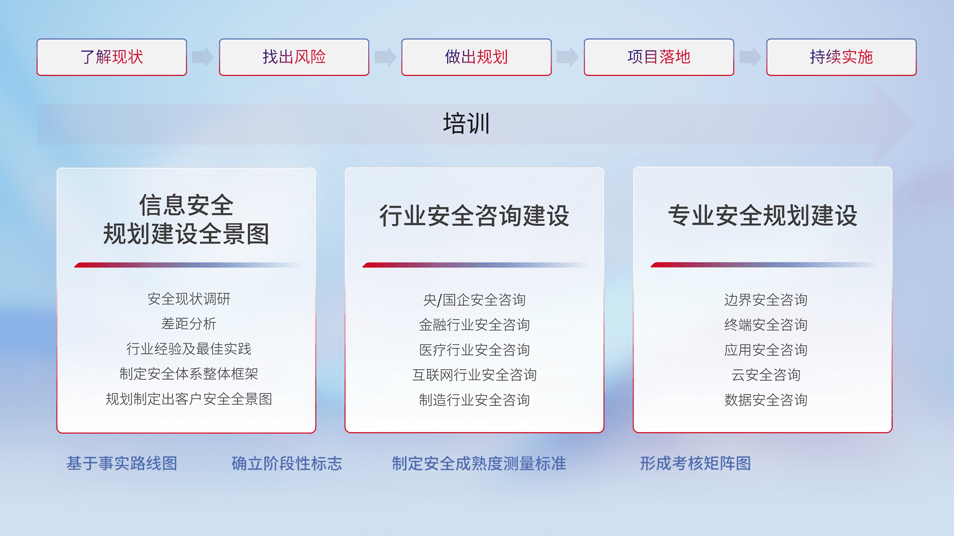 通过专业的法律咨询解读、、合规架构体现、、差异化解决方案、、、测试实施支持等服务,,,为客户量身打造等保合规体系。。